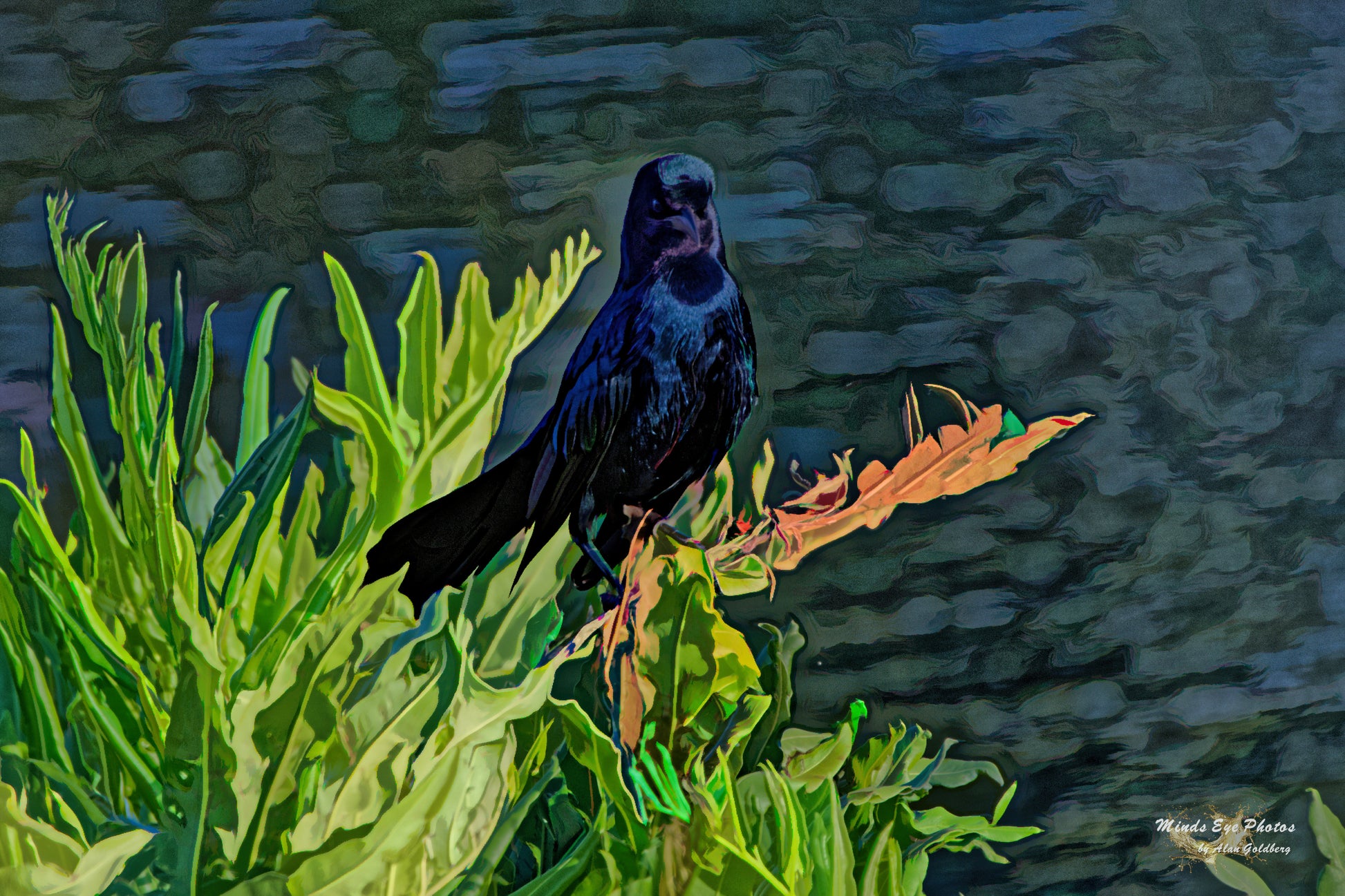 Boat tailed Crackle in Wetlands - Limited Edition Photo Art by Alan Goldberg. Each piece is signed by the artist and each purchase will receive a Certificate of Authentication.
