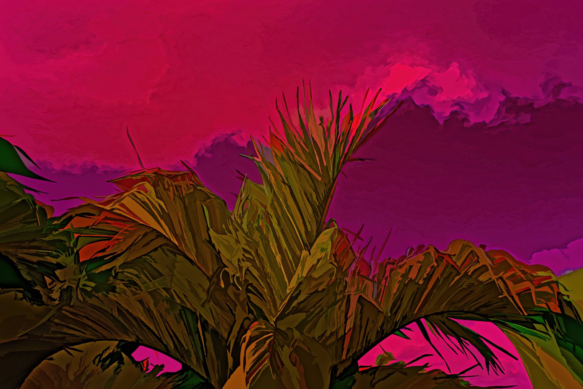 Palm and sky in Infrared and Acrylic - Limited Edition Photo Art by Alan Goldberg. Each piece is signed by the artist and each purchase will receive a Certificate of Authentication.